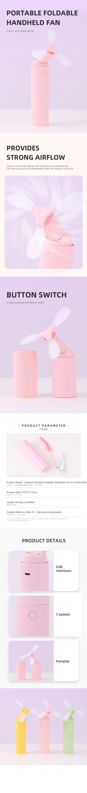 Features:3-speed settings with button switch. Classic and simple styling with handheld and desktop use. The fan stops working immediately when fan blade is touched.