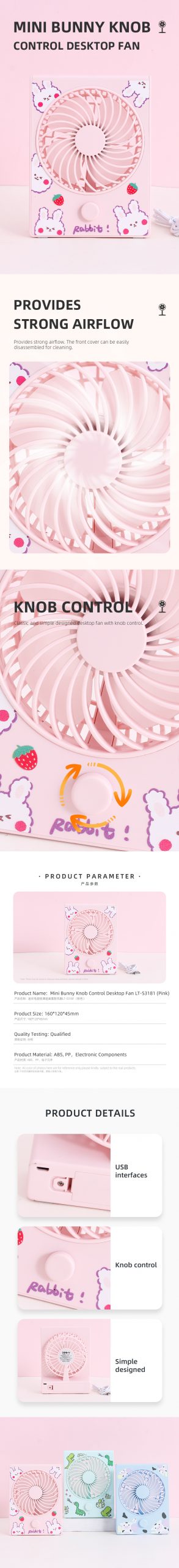 Mini Bunny Knob Control Desktop Fan LT-S3181 (Pink)