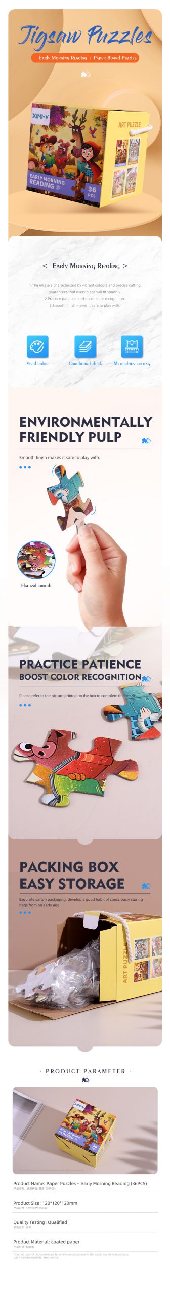 Usage:Refer to the color box pattern to assemble the puzzle.