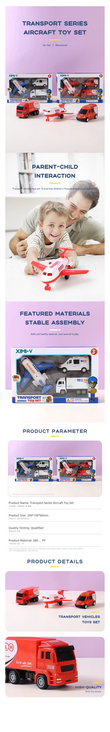 Features:Pull-back aircraft toy with transport vehicles toys set.