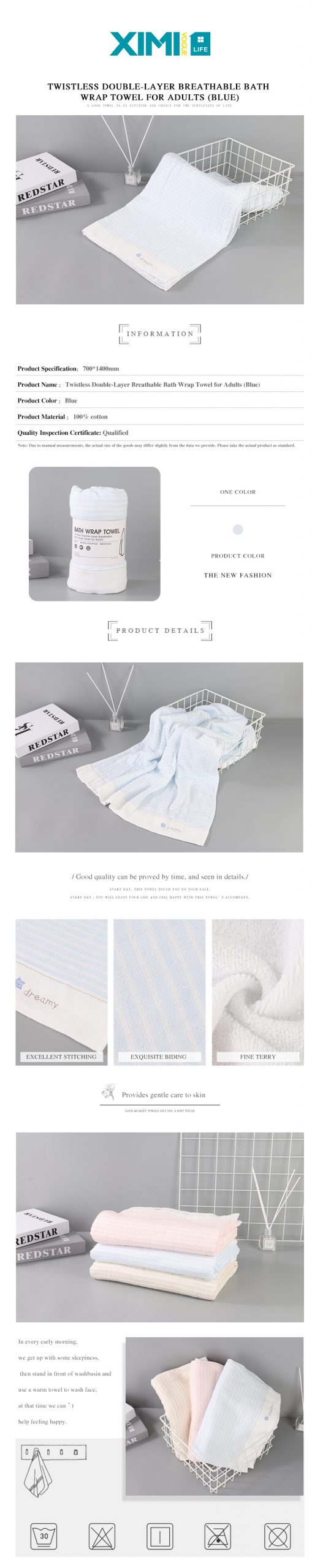 Twistless Double-Layer Breathable Bath Wrap Towel for Adults (Blue)