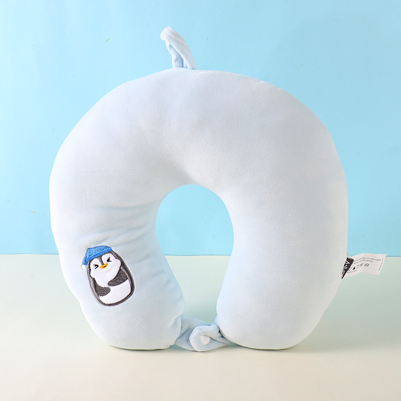 Winking Penguin Embroidery PP Foam U-Shaped Pillow (Blue)